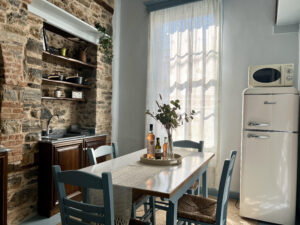 Tucked away in the heart of old town of Vathy, Samos, The Blue House is more than just a place to stay — it’s a home with a soul. Lovingly restored, it retains its traditional charm while offering the comforts of a peaceful island escape.